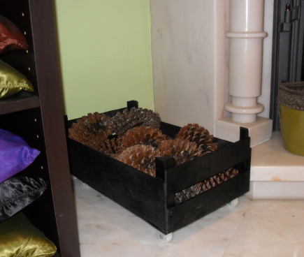 Ando sempre a inventar e lembrei-me de usar uma caixa de fruta para guardar a lenha ao pé da lareira.
